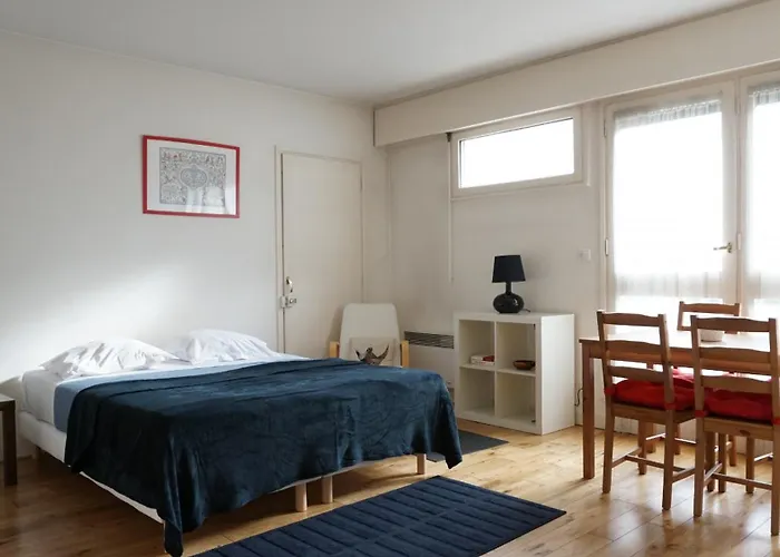 The 0-bedroom apartment is located merely 800 feet from Proust and 1.4 miles from Champ de Mars. This apartment is a short way from Paris Museum of Modern Art and Orly airport is 26 minutes’ drive away. Guests can reach the wrought-iron lattice Eiffel Tower located 1.1 miles away.